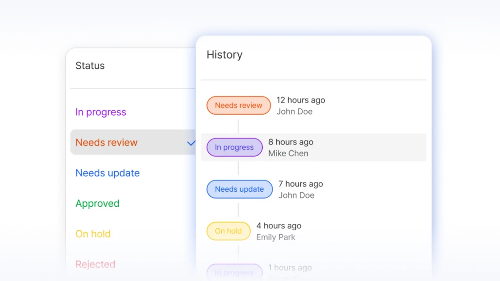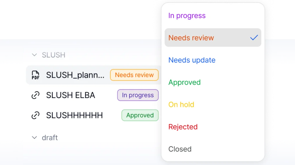 Mark each version as Approved, Rejected, or Needs Update at a glance. No ambiguity. No follow-up emails.